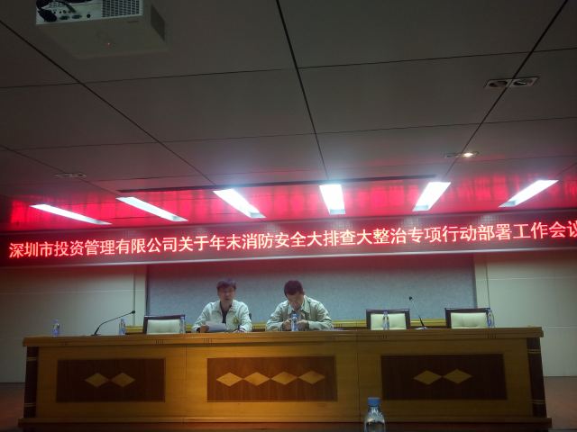 11月20日下午,深圳市投资管理有限公司在龙鹏大楼八楼会议室组织召开关于岁未消防安全大排查整治专项行动部署工作会议。2017/11/21