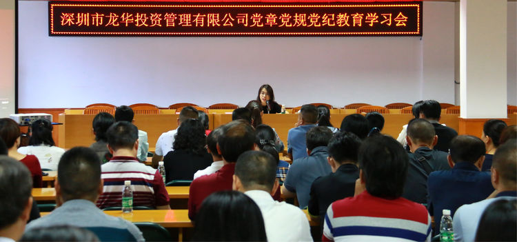 为深入学习贯彻习近平新时代中国特色社会主义思想和党的十九大精神、落实新时代全面从严治党新要求,传达10月12日全区党章党规党纪教育培训会会议精神,2018年10月15日起,龙华投控集团组织全系统党员及非党员干部职工开展党章党规党纪教育学习会。