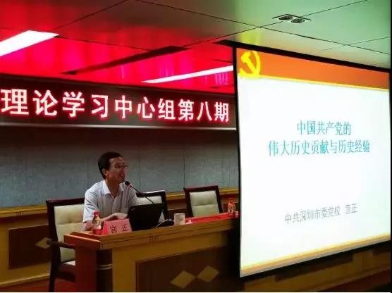 为做好“不忘初心、牢记使命”主题教育,强化党员领导干部集中学习,9月23日下午,龙华投控集团党委理论学习中心组第八期(扩大)学习会在龙鹏大楼8楼会议室召开。会议邀请深圳市委党校马克思主义学院科学社会主义教研部副主任宫正同志围绕“不忘初心、牢记使命——中国共产党历史经验”作专题辅导。