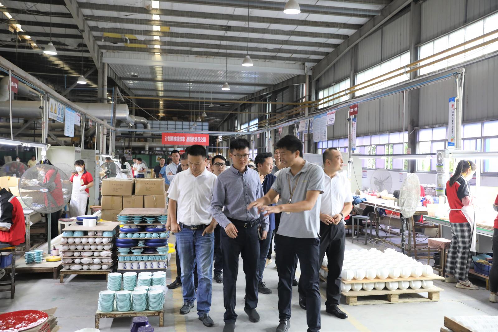 参观队伍首先来到国瓷永丰源公司产品展厅,参观了解其主要产品和企业文化。随后,大家前往会议室观看了国瓷永丰源公司微电影《绝地突围》,并由国瓷永丰源公司安环部部长刘学成进行安全生产管理经验分享,他从制定安全管理目标、完善安全生产管理规章制度、建立健全安全风险分级管控和隐患排查治理双重预防机制、开展安全生产宣传教育、做好应急准备等诸多方面,全面细致地介绍了国瓷永丰源公司安全生产管理经验及先进做法,令在场人员受益匪浅。最后,相关人员对国瓷永丰源公司白胎车间、彩瓷车间、花纸车间等重点生产区域进行了参观交流,结合平时工作中遇到的重点、难点问题做了深入沟通,探讨优秀经验做法,相互学习借鉴、彼此增益发展。