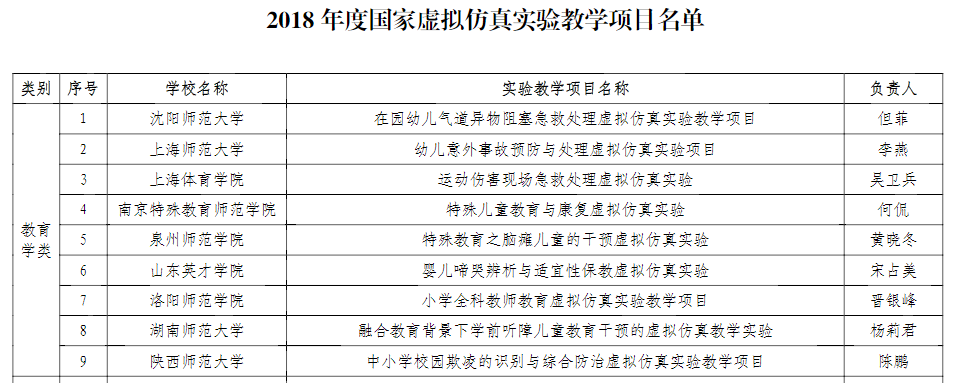 近日,教育部印发《关于公布2018年度国家虚拟仿真实验教学项目认定结果的通知》,决定认定296个虚拟仿真实验教学项目为2018年度国家虚拟仿真实验教学项目,我校吴卫兵老师申报的运动伤害现场急救处理虚拟仿真实验成功入选。这是我校在国家级示范性虚拟仿真实验教学领域中取得的首次突破。