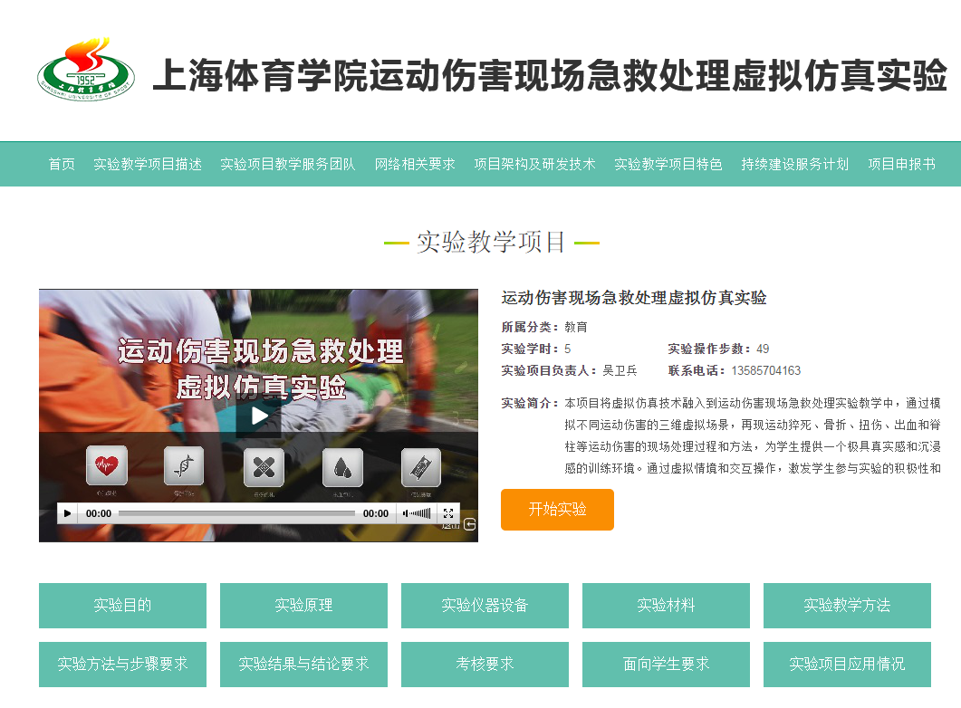 虚拟仿真实验教学项目是教育部推进现代信息技术与实验教学项目深度融合、拓展实验教学内容广度和深度、延伸实验教学时间和空间、提升实验教学质量和水平的重要举措。此次我校获批的项目“运动伤害现场急救处理虚拟仿真实验”将虚拟仿真技术融入到运动伤害现场急救处理实验教学中,通过模拟不同运动伤害的三维虚拟场景,为学生提供一个极具真实感和沉浸感的训练环境,加强了学生对运动伤害现场急救“理论”和“实践”的双重学习体验。