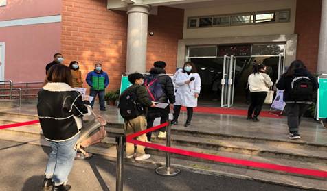 考试当天,考生进行两次测温,第一次在650门口进行,第二次测温在教学楼门口由医生使用精确度更高的额温枪复测进行,进考区时展示健康码绿码和上交健康承诺书,保持安全距离的有序进入相应考场。考试中监考教师全程佩戴口罩,考生进出考场佩戴口罩,答题过程可摘下口罩,核验身份时需摘下口罩。考试结束考生分楼层错峰离开考场,种种措施共同保障考试师生的健康安全。