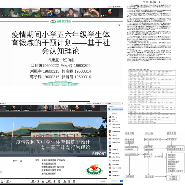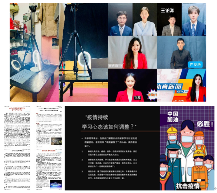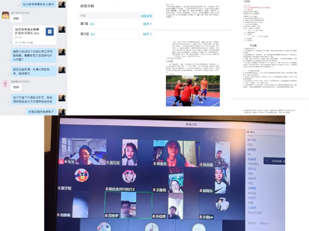 社会体育教学团队张莹老师:“以教材建设”为载体,创新《社区体育导论》线上教学模式。具体做法:①日常授课采用三种学习工具相互配合,补充使用:学习通+企业微信+腾讯会议。②师生共建“线上教材”+在线视频学习+直播讲授的立体授课方式。