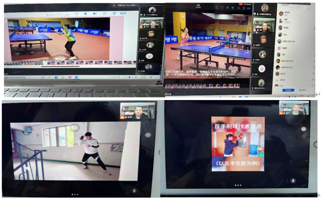 陈彬老师:乒乓球课程的混合式教学设计与实施。1.重构教学内容,推进线上教学课程思政建设:线上教学融入在国家队执教的经历和教学体会进行授课;线上教学通过讲好中国乒乓球队故事进行授课; 线上教学组织观摩经典赛事的教学活动进行授课。2.优化教学策略,促进学生主动学习:完善教学平台教学资源建设; 及时更新学科前沿知识。3. 融入教育技术,创新线下训练实践:师生合作,共同完成技术视频制作。