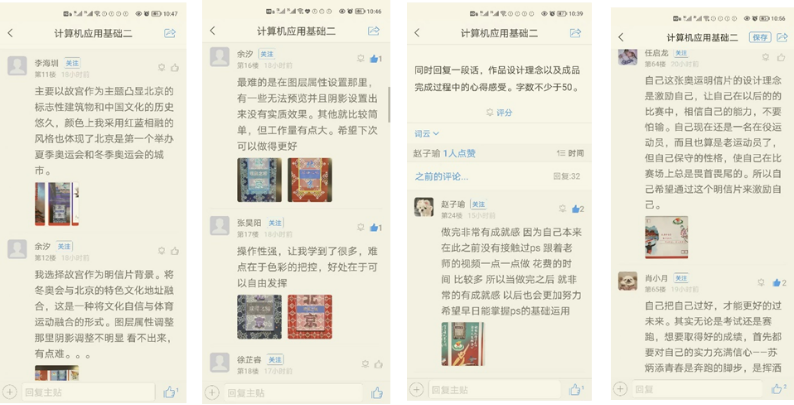公共计算机教学团队姜增贺老师等:基于OBE理念的计算机公共课在线循证教学。教学方法:1基于奥运主题的项目式学习方法。配合课程思政建设,项目主题选用奥运,建立整体的学习项目任务。并多处融合上体元素。2.过程性评价支持的结果导向型教学。依据活动中留存的学习证据,进行过程性评价,训练学生客观自审,理性分析,有效控制学习过程与结果。3.情感互动。教学中重视群体情绪引导,例如邀请大家在签到中介绍历史上的今天、拍摄某个锻炼动作、分享有趣好玩的发现等并将此作为素材结合到本次学习任务中,快速建立情绪共情校正个体负面情绪,使学生在情感上尽快投入学习中来。