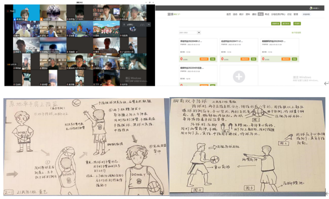 篮球教学团队房纹萱老师:模块化—专题化—交互式教学模式的实践应用。课后作业主要以运动技能展示与相关业务能力提升为主,主要形式主要分为:(1)视频演示。主要用于学生基本动作的演示认知和教学组织能力的应用过程,学生可在拍摄过程中利用网络平台信息传递的及时性加强与老师交流;(2)手绘作业。主要用于教师了解学生对技术动作的掌握程度,通过对动作结构的绘图,教师可得到及时教学反馈,了解个体在对技术动作、战术配合的理解程度;(3)文案撰写。主要用于锻炼情景带入后学生的主动思考能力,其中主要分为教案编写与观点陈述两部分。教案作业是在前两项的基础上从输入过渡到输出,在编写过程中规范教案格式;观点陈述主要以观后感为主要形式,学生在观看比赛的过程中,从赛中运动员、教练员和裁判员三种不同的角色出发,记录心得体会,培养其思维发散,举一反三的学习习惯。(4)课后答疑:注重作业提交后的及时反馈,个别问题在答疑时点对点指导,强调个体教学理念,使答疑指导过程更加具有针对性。