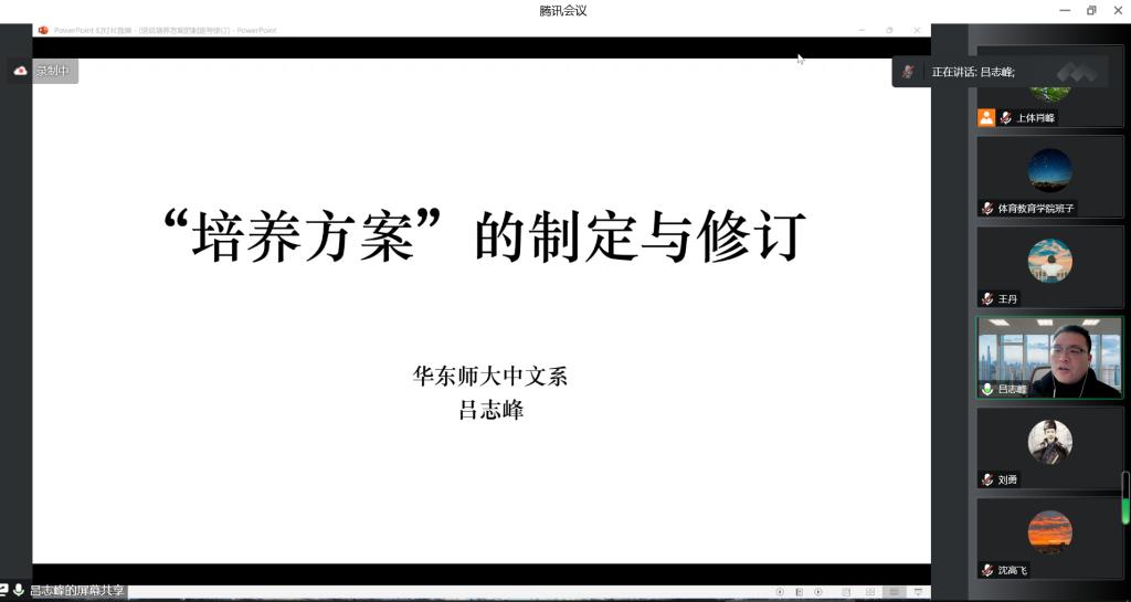 为贯彻落实教育部《关于做好“十四五”期间普通高等学校本科教育教学审核评估工作的通知》、上海市教育委员会《上海市属普通高等学校本科教育教学审核评估实施方案(2021-2025年)的通知》文件精神,推进《上海体育学院关于修订2023版本科人才培养方案的指导意见》工作,进一步提高我校人才培养方案及教学大纲制定的规范性、科学性和适用性,我校于1月10日-17日在线举办“‘四新建设’背景下基于OBE理念的人才培养方案及教学大纲修订专题培训”,邀请华东师范大学中文系党委书记吕志峰博士开展专业人才培养方案编写、课程教学大纲修订2个专题模块内容的培训。各教学单位党政班子成员、教学团队负责人、课程团队负责人80余人参加研修,教务处副处长(主持工作)蔡玉军、副处长沈高飞出席并主持活动。