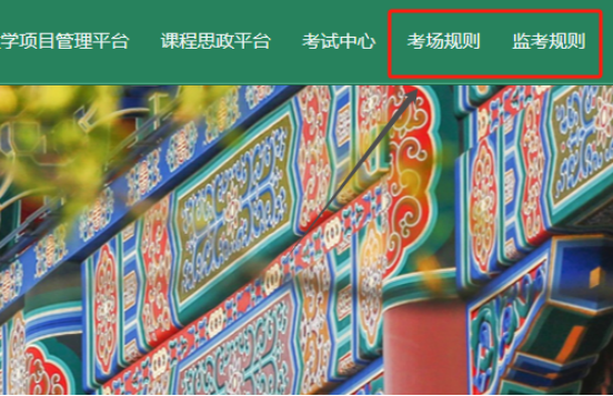 学校主页-个人信息门户登录-右下角课程中心-右上角选择考场规则或监考规则进行回答。
