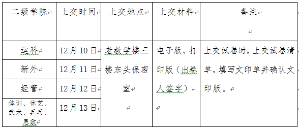 请各教学团队将考试类课程试卷报教务处本科考试中心。报送试卷请严格按照时间节点,具体安排见下表。
