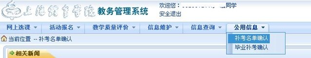 3.进入学生信息页面后,点击进入“公用信息”à“补考名单确认”。