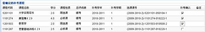 在“已确定的补考课程”中将会出现报名补考的课程,完成网上确认。