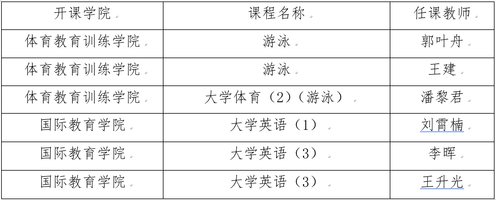 特别说明:单开班游泳课程考试时间安排在教学周第8周。