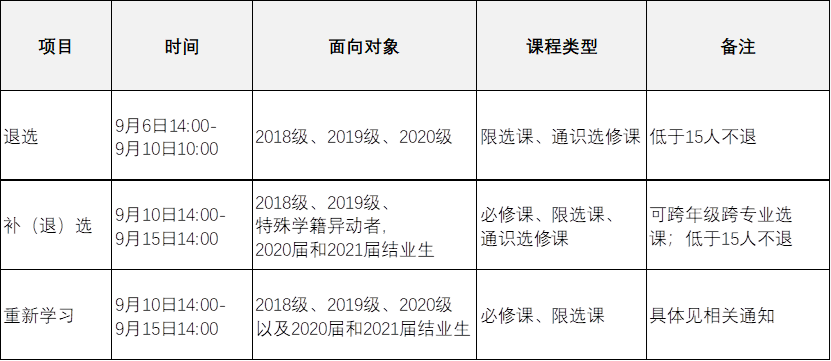 2021-2022学年第一学期补(退)选即将开始,请各开课单位设定好选课容量,各学院通知学生按照要求完成操作。