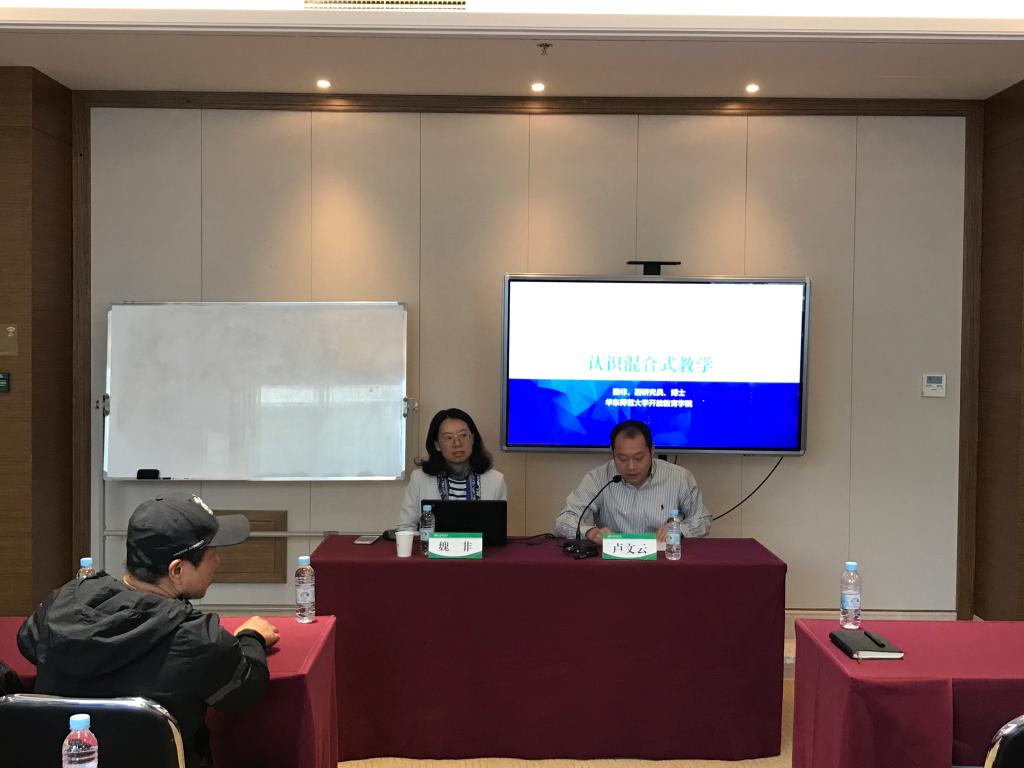 10月9日下午,《混合式教学设计与实施》系列培训讲座在体育交流中心第四报告厅举办,教务处、教师教学发展中心特邀华东师范大学魏非博士主讲第一讲《认识混合式教学》,教务处副处长卢文云教授主持活动,各二级学院50余位教师参加培训。