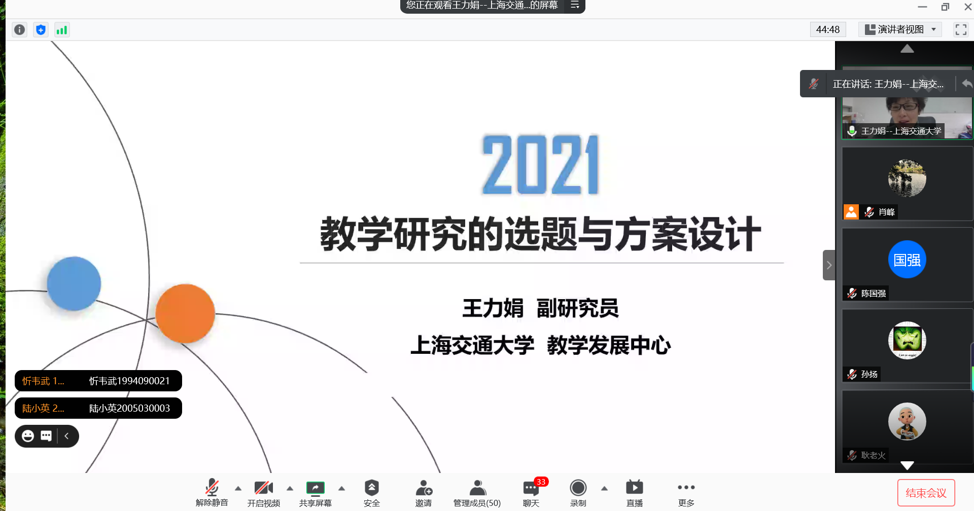 3月17日晚上,教务处、教师教学发展中心特邀上海交通大学王力娟博士主讲第一讲《教学研究的选题与方案设计》,研修活动以直播形式在腾讯会议平台举办,各二级学院教师120余人参加培训。