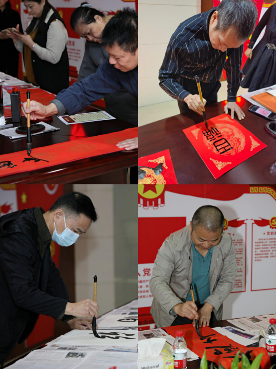 大家挥毫泼墨,互道祝福,共贺新春。有的是临近退休的老员工,有的是复退军人,有的是曾经的扶贫干部,有的仅仅是一名爱好书法的普通员工。多名书法家来自于各个辖属企业,不得不说,集团辖属企业真是人才济济,藏龙卧虎!