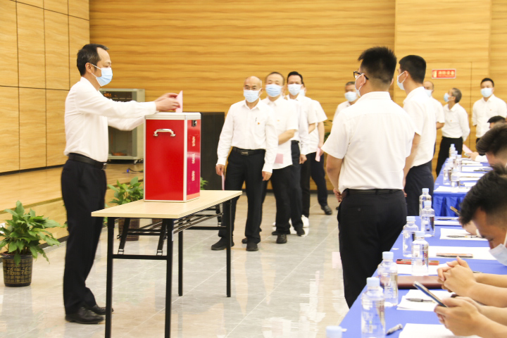 在投票环节,全体党员积极行使权利,无记名投票选举了党委委员。经计票,周芳同志当选集团党委委员。