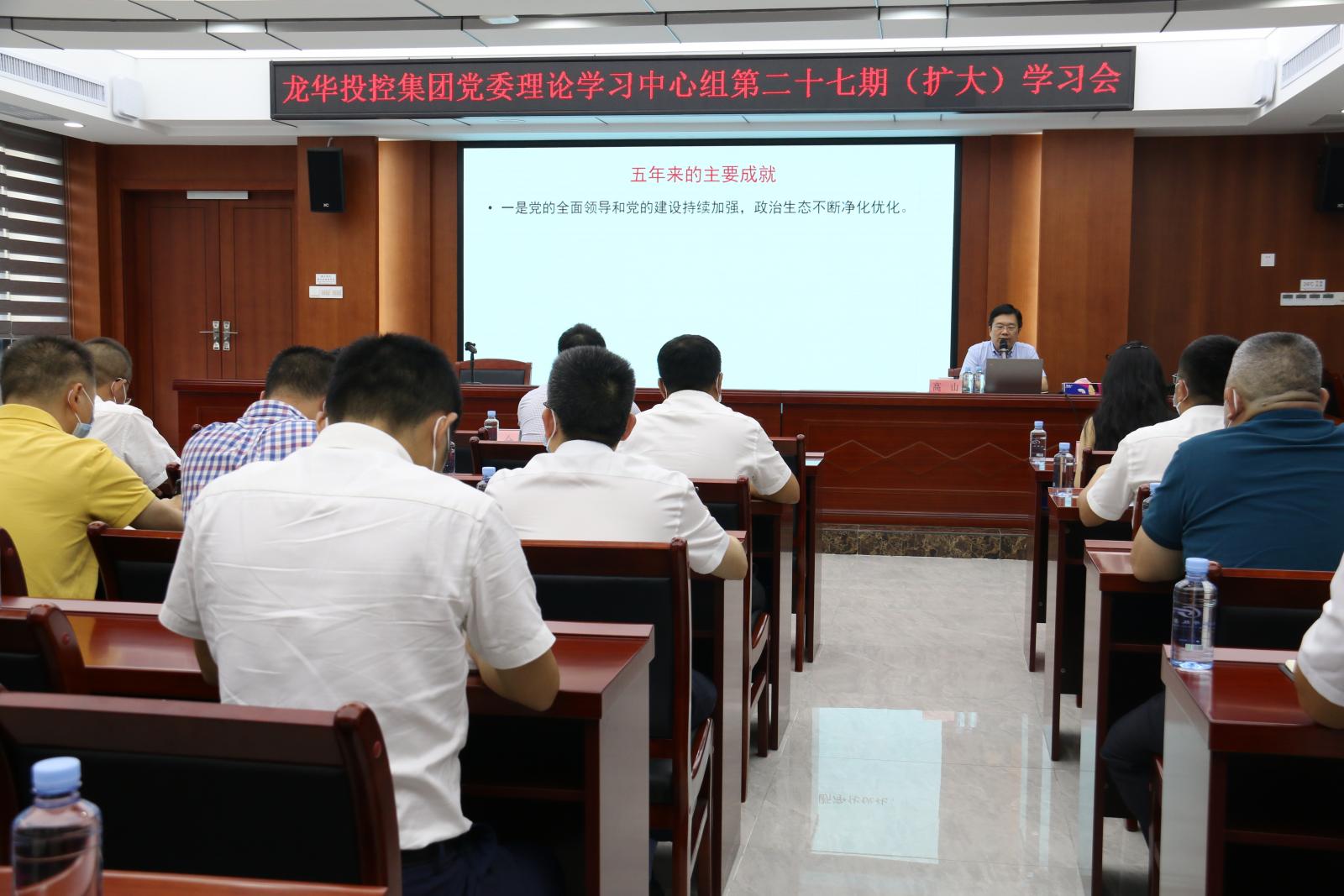 6月2日下午,龙华投控集团召开党委理论学习中心组(扩大)学习会议。会议邀请了中共深圳市委党校经济研究所经济学教授、博士高山同志做专题辅导。集团领导班子成员、全体中层干部,辖属企业党政班子成员及党员干部职工等参加学习,会议由集团党委专职副书记金鹏同志主持。
