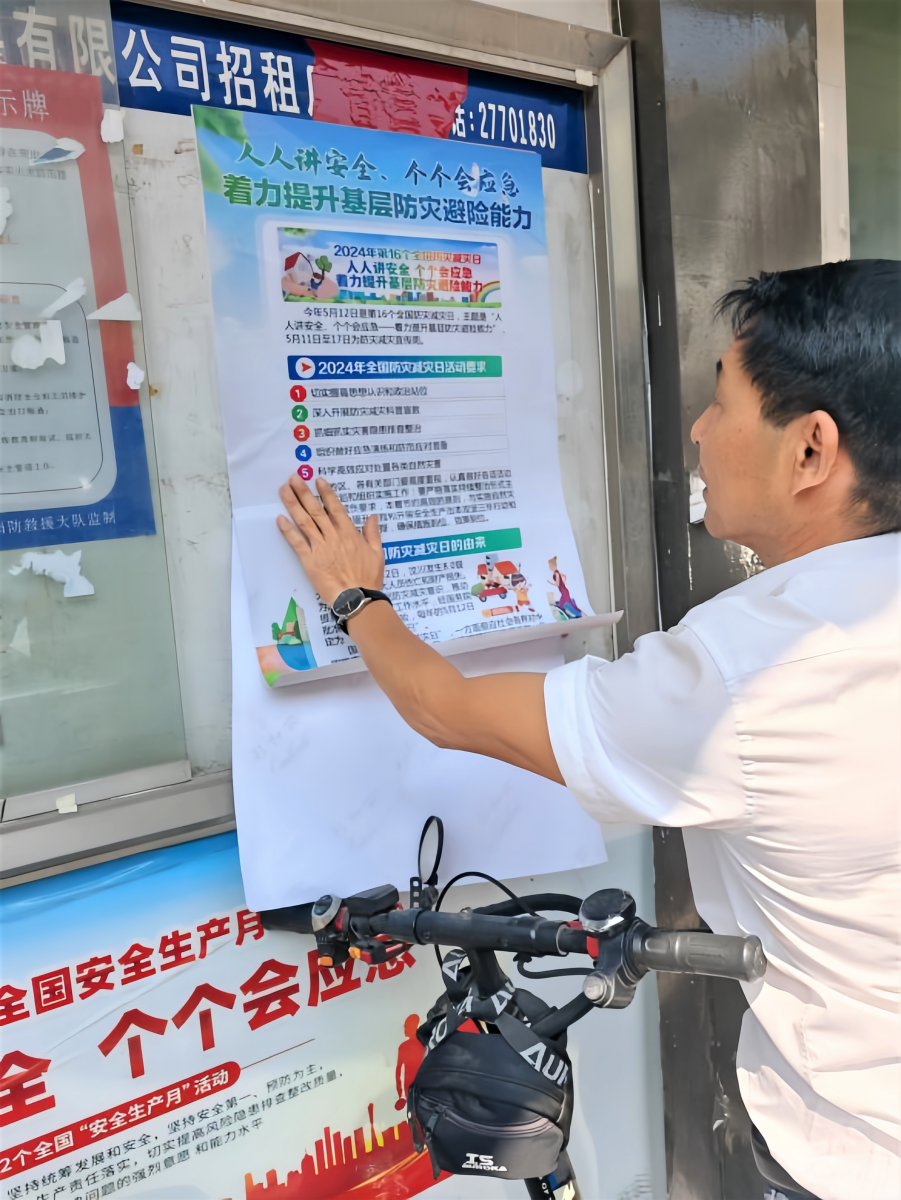 为使管辖范围内广大居民更直观地了解防灾减灾知识,集团设计并印刷了防灾减灾宣传海报75份,内容涵盖了地震、洪水、火灾、台风、雷电灾害等多种自然灾害的预防和应对知识,同时,督促各辖属企业在管辖的物业小区、工业园、在建项目显眼处张贴,以图文并茂的形式向周边居民普及防灾减灾科学知识,切实提高全民安全意识和避险自救能力。