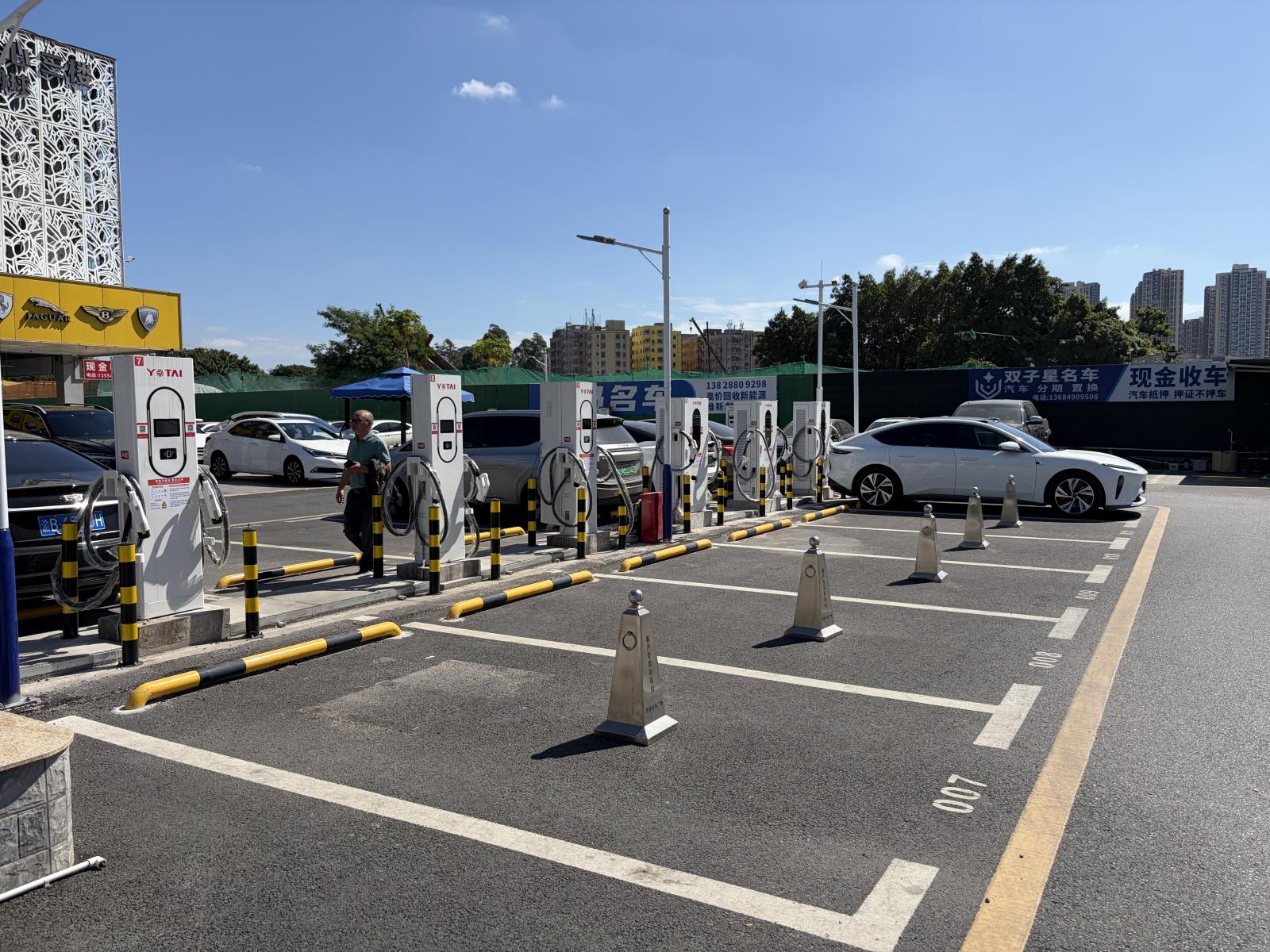 龙优富士康南门超充站以“交通便捷、客群密集、场景多元”三重优势为抓手,在履行社会责任的同时,打造高效补能标杆。站点地处二手车广场停车场内且紧邻主干道,既能实现“临街车辆引流+场内固定客群”双向覆盖,又毗邻大型工厂与居民社区,可精准满足通勤员工、周边居民的充电需求。