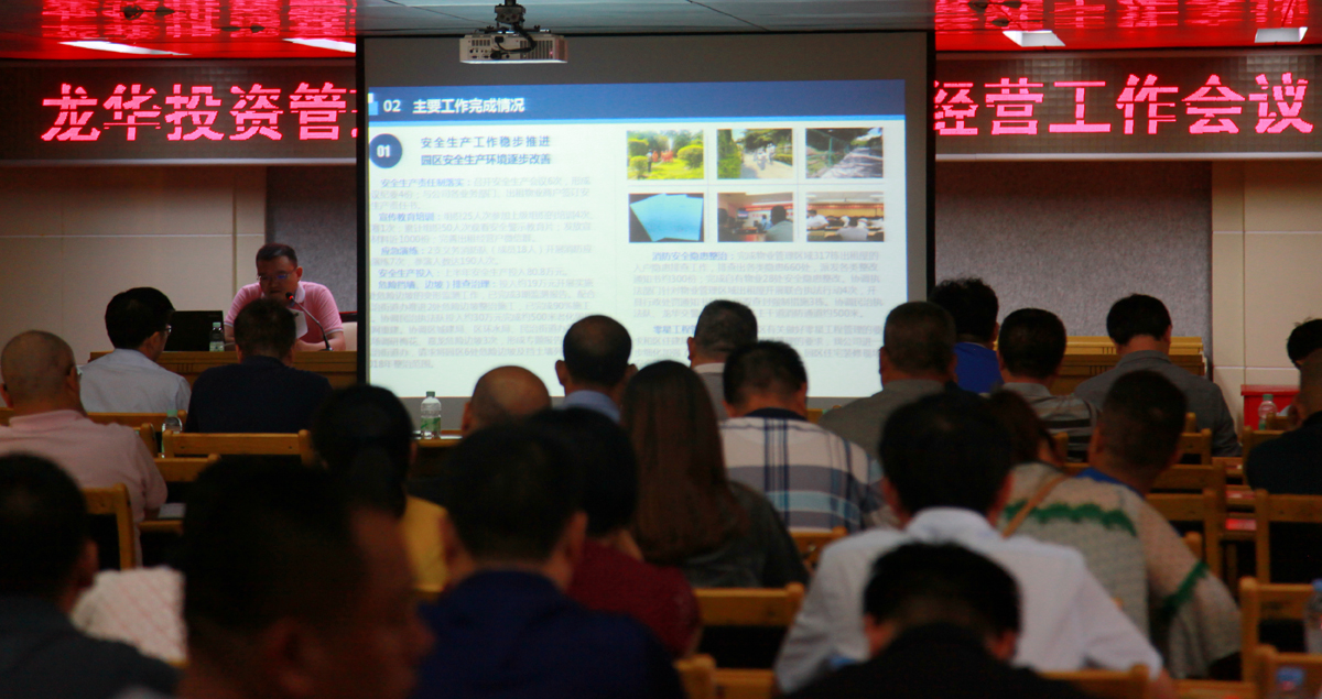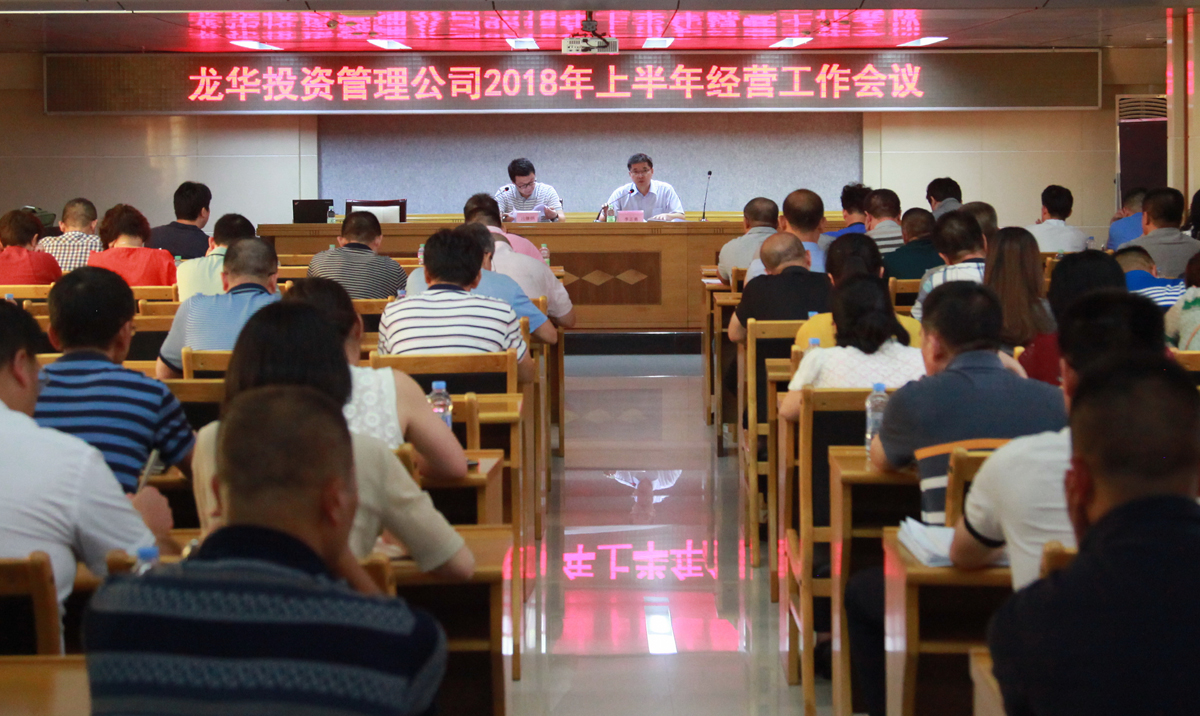 2018年7月27日下午,龙华投管公司在龙鹏大楼八楼会议室召开2018年上半年经营管理工作会议,公司党委副书记、总经理吕继纲同志,副总经理李正勇同志,各部门负责人,各辖属企业党支部班子、经营班子、各部门负责人等80余人出席了本次会议。会议由正勇同志主持,继纲同志对经营工作情况作了总结发言。