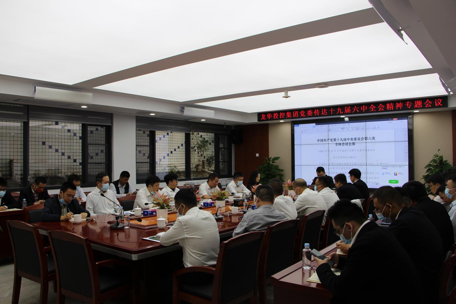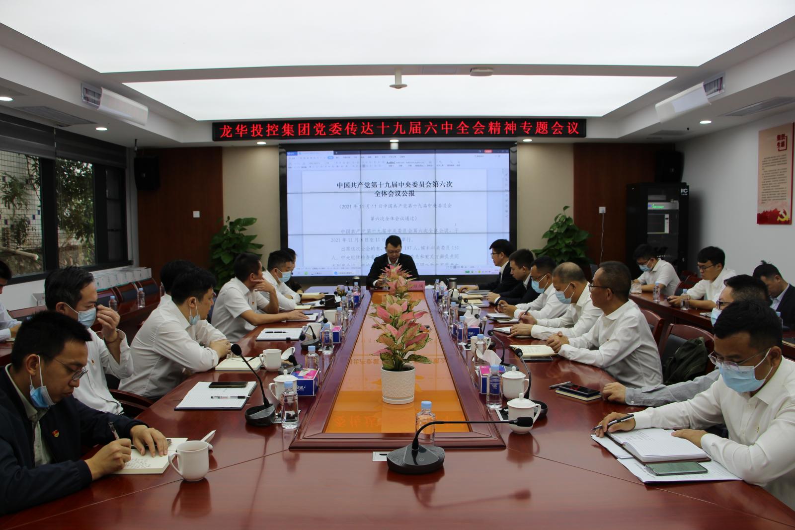 11月17日上午,龙华投控集团召开专题会议,传达学习十九届六中全会精神,并研究贯彻落实意见。集团党委书记、董事长吕继纲同志主持会议并讲话。集团领导班子成员,集团本部中层干部,辖属企业党政班子负责人等参加会议。