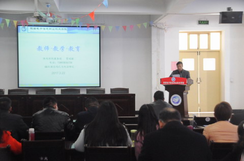 配合贯彻落实全国和陕西省高校思想政治工作会议“教育者先受教育”的精神和习总书记的重要讲话,推动学院教育教学活动的开展,3月22日,学院组织召开教学专题报告会,院教务处处长贺瑞缠老师以“教师· 教学 ·教育”为题作了专题报告。副院长张成现主持报告会,全体教师、教学管理人员及教辅人员参加了报告会。