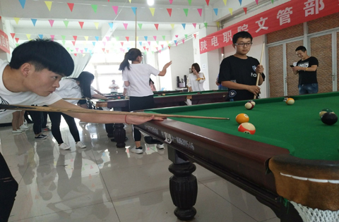2017年6月12日下午,我院文管部在图书馆二楼学生活动中心举办了“心随球转,快意人生,碰撞台球,激情四射”桌球大赛。