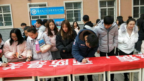 宣传活动现场,主持人用广播详细讲解了艾滋病的来龙去脉、感染过程、传播途径与危害等知识,对艾滋病防治方针、政策也进行了宣传,倡导学生自强自爱,健康生活方式,抵制艾滋病的侵袭。现场的同学认真听讲,并在条幅上签下自己的名字。近期,院团委还将邀请蓝田县疾控中心专家来我院给全体师生做讲座。