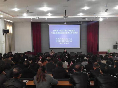 11月13日,我院在“双百工程”帮扶凤翔县凤翔师范举办会计从业人员技能培训。来自凤翔县教体系统局属各单位会计、各镇教委会计、各中小学校会计、报账员180余人参加了培训。