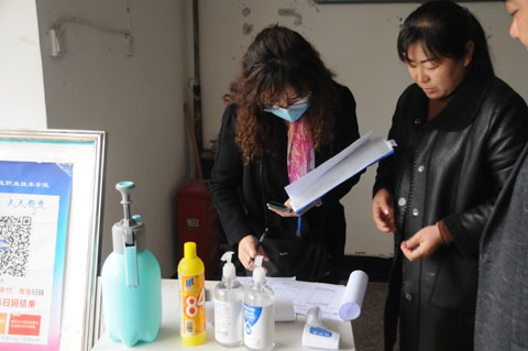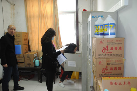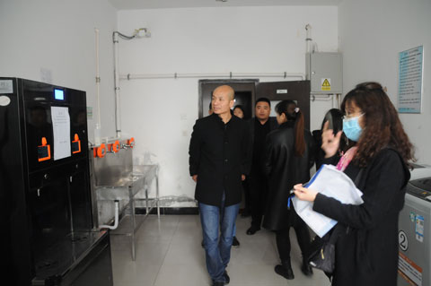 汇报结束后,检查组实地查看了食堂、学生公寓、校医务室、临时隔离观察场所、防控物资储备室、饮水设施、校园监控等重点场所的准备和管理运行情况及各项防控措施的操作流程。查阅了相关资料,对有关方面工作情况进行询问检查。