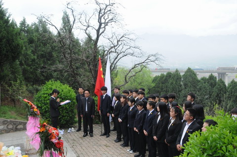 随后,大家在汪锋同志陵园进行了敬献花篮、鞠躬,学生代表王倩倩作了发言,号召新时代的青年要有历史担当,不忘初心,牢记使命,奋勇作为,争做先锋,为实现中华民族的伟大复兴奉献青春。