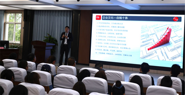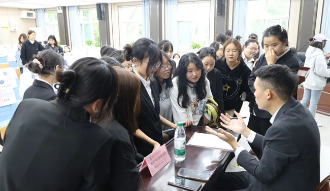 企业宣讲环节,四家企业负责人分别围绕企业发展历程、核心业务板块、人才培养体系、财会岗位需求、薪资福利结构及职业晋升路径进行详细介绍。陕西泾航集团强调“师徒制”带教模式,助力新人快速融入;陕西同鑫财税策划管理有限公司突出 “弹性发展空间”,鼓励员工参与跨领域项目;陕西华优财税管理集团有限公司详解 “阶梯式薪资体系”,将薪酬与能力、业绩直接挂钩;陕西众辰农业综合服务有限公司则结合乡村振兴战略,介绍了涉农财会岗位的独特价值与发展潜力。详实的讲解让同学们对不同企业的岗位特点有了清晰认知,也为后续选择提供了有力参考。
