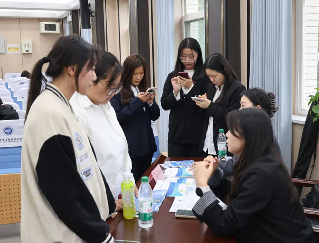 宣讲会结束后,现场面试与咨询环节随即展开。展台前迅速围满了前来咨询的学生:有的同学手持精心准备的简历,详细询问岗位具体职责与任职要求;有的同学结合自身实习经历,与企业 HR 交流职业发展规划;还有的同学围绕薪资待遇、社保缴纳、试用期时长等细节问题积极提问,企业代表均耐心细致地逐一解答,现场气氛热烈而有序。“之前对财会岗位的认知还停留在课本上,今天和企业HR聊完,才知道不同行业的财会工作侧重点差异这么大,也明确了自己需要提升的技能方向。”2023 级大数据与会计专业学生李同学说道。