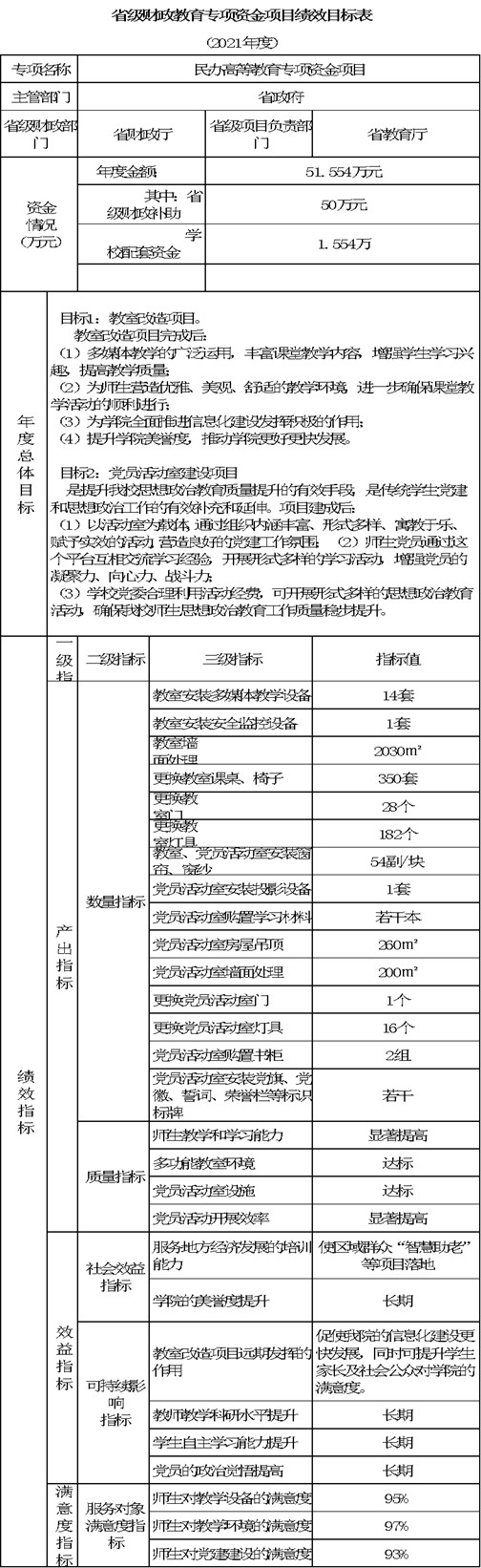 专项资金公告:省级财政教育专项资金项目绩效目标表,2021年陕西省民办高等教育发展专项资金项目建设规