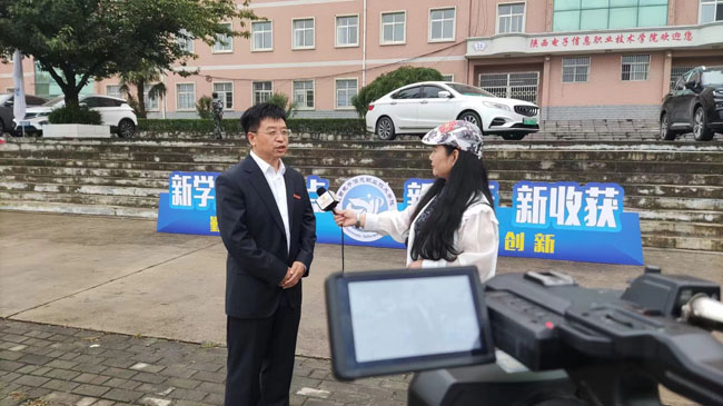 王明星接受了陕西省广播电视台《丝路博览》栏目的采访。他介绍了学院近三年以来取得的成就,并感谢上级机关和社会各界对学校事业发展所给予的关爱支持,表示学院将进一步加强校地合作,深化校企合作、产教融合,深化教育教学改革,大力改善办学条件,努力推进学院事业高质量发展。