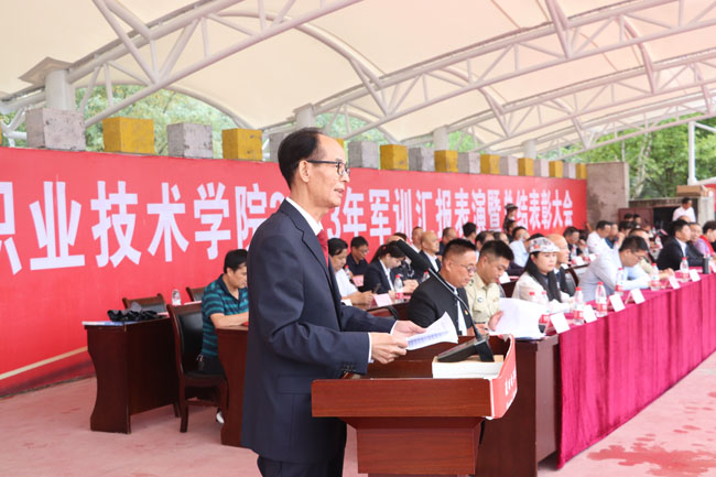 他指出,经过两周时间的军训,我校2000余名学生顺利完成了军训任务,达到了预期效果。军训期间,各位教官不辞辛苦,严格要求,严谨执教,严格训练,循循善诱,认真示范,耐心指导,他们认真负责,一丝不苟的严谨作风深深教育和影响了广大参训学生。参训学生严格要求,严格训练,听从指挥,继承我军光荣传统,发扬不怕苦不怕累的拼搏精神,流血流汗不流泪,掉皮掉肉不掉队,全身心投入训练,圆满完成了各项军训任务。