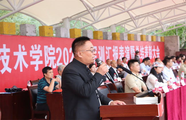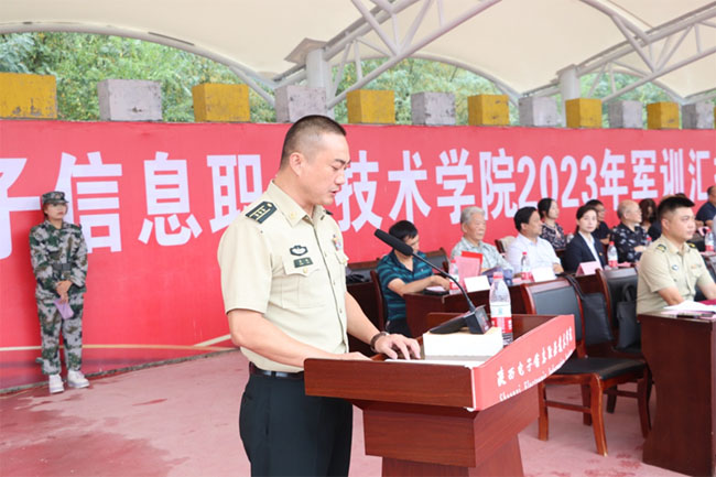 他强调,军训对同学们是一次严格的体力、毅力和意志的考验。通过军训,同学们接受了一次深刻的国防教育、爱国主义和集体主义教育,体会到了什么是铁的纪律、什么是坚强的意志、什么是团队精神。通过军训,同学们的精神面貌发生了可喜的变化,身体素质、组织纪律性、团结协作精神有了明显的提高。他希望同学们珍惜军训经历,将军训中养成的优良作风、高尚品质、奋斗精神延续到未来的日常学习、工作和生活之中,继续严格要求自己、锻炼自己、塑造自己,保持吃苦耐劳的精神状态,迎难而上的顽强意志,团结协作的互助情谊,争先创优的拼搏精神,争取更大的进步。他希望同学们树立国防意识,厚植爱国情怀,赓续红色血脉,做德智体美劳全面发展的社会主义建设者和接班人,用实际行动谱写更加绚丽、更加灿烂的人生华章。