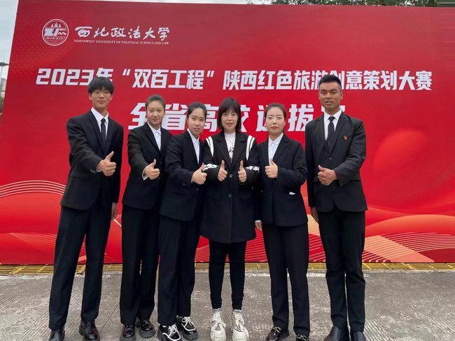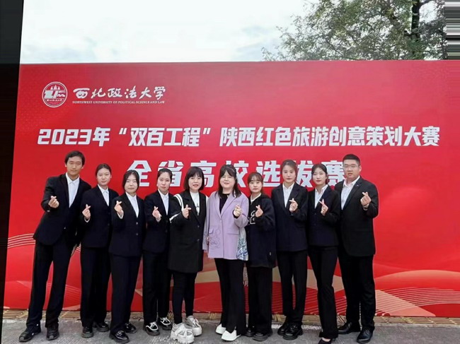 由中共陕西省委教育工作委员会主办的2023年第二届“双百工程”陕西红色旅游创意策划大赛全省高校选拔赛, 10月21日在西北政法大学长安校区举行。我院有五支代表队参赛。其中由梁飞亚老师指导的学生团队晋级省级总决赛。
