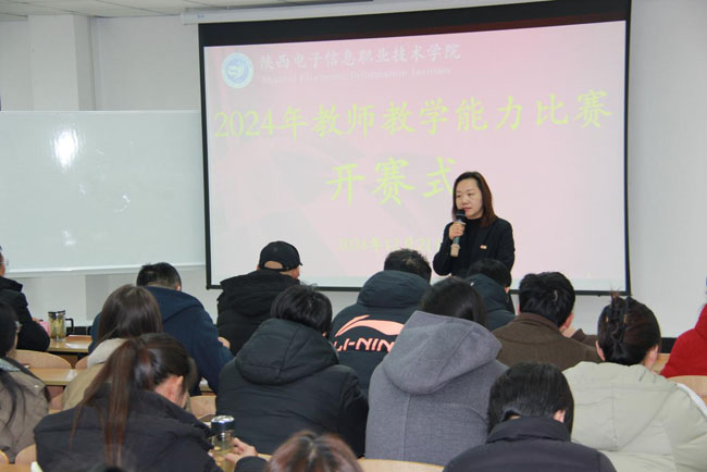 12月21日上午9时,比赛开赛式在教学楼1207多功能厅举行。副院长石晓英出席开赛仪式并讲话,10位校内外专家评委及全体参赛教师参加了开赛仪式。