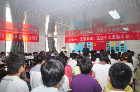 党委书记李云济作了重要讲话。他首先代表学院党委向受表彰的先进集体和个人表示热烈的祝贺,并向学院各级党组织和广大党员致以节日的问候。他回顾了我党八十多年的发展历程:革命战争的严峻考验,建设道路的艰辛探索,改革开放的伟大创新,我们党之所以能够团结带领全国各族人民战胜各种困难和挑战,不断取得革命、建设和改革的伟大胜利,最根本的,就在于我们党具有与时俱进的理论和勇于实践的优良品质,在于始终保持马克思主义政党的先进性,始终走在中国工人阶级和中国广大人民的前列,始终走在时代潮流的前列。李书记说,过去的一年里,我院党委在省委教育工委、省教育厅的正确领导下,坚持以科学发展观为指导,抢抓机遇,深化改革,众志成城,各项事业都取得了显著成效。今年我们面对的主要任务有:全力做好招生工作和评建工作,搞好学院的内涵建设;全面进行新校区建设工作,实现办学条件的改善;结合创建学习型党组织建设活动,深入开展争先创优活动,实现党建的统筹协调发展。李书记最后对广大党员提出了几点希望和要求:一是要抓好政治理论学习,提高党员干部的思想政治素养;二是要坚持以人为本,加强师德师风建设;三是要切实发挥党组织的战斗堡垒作用和党员的先锋模范作用。