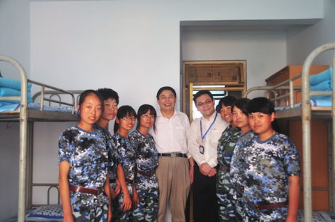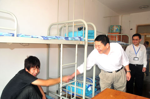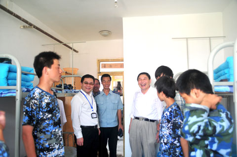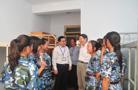 2010917日下午2点,院长邢永华,院董事会秘书陈文达,院工会主席、院办公室主任杨瑞卿在学生处处长马放奇、总务处副处长陆建业及军训团团长的陪同下深入2010级新生宿舍,亲切看望新生。