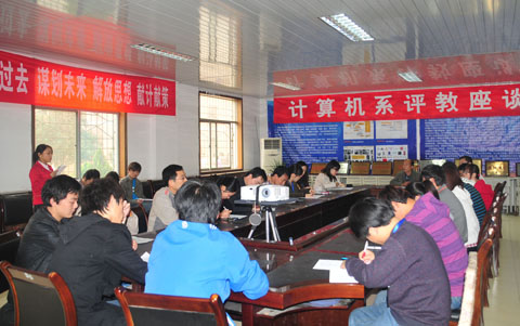 10月23日下午4点钟,计算机系召开了学生评教座谈会,会议由计算机系教研室主任杨勇主持,参加会议的有计算机系副主任李文奎、教学秘书戴丽萍、教师冯花蕾、郭薇、王峰及计算机系各专业各教学班的班长和学习委员,会议还特别邀请了辅导员田金锋、李珍、李紫敏、张沛老师。