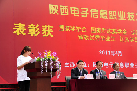 2011年4月13日,我院隆重召开全院师生大会,表彰获国家奖学金、国家励志奖学金、院超越奖学金、省级优秀毕业生、省级优秀学生干部和院第六届书画展获奖者。会议由院理事会理事、院长助理年小望同志主持,华西教育投资公司董事长王明亮、院理事会理事长兼院常务副院长穆耀辉、院党委书记李云济、院长(院理事会理事)党惠清、名誉院长(院理事会理事)程凤珍、副院长邢永华、副院长陈建铎、院党委副书记武玉光、院长助理田志岗、院工会主席杨瑞卿及各系、部、处、室领导出席了会议。