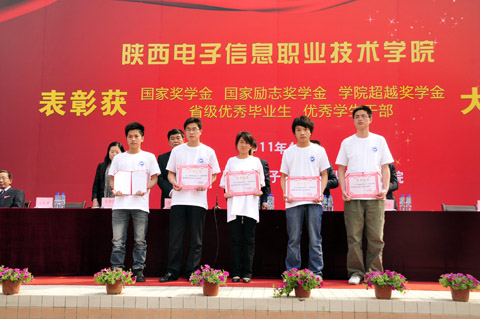 会上,院事会理事长、常务副院长穆耀辉同志宣读了获省2011年高等学校优秀毕业生和优秀学生干部的通知,院党委书记李云济同志宣读了获国家奖学金和国家励志奖学金的通知,副院长邢永华同志宣读了获学院超越奖学金的通知,副院长陈建铎同志宣读了院第六届书画展获奖名单。院领导为获奖同学颁发了荣誉证书、奖金和奖品。受表彰学生代表许莎作了大会发言。她代表受表彰的同学向领导和老师表示衷心的感谢,表示在成绩面前不骄不躁,继续努力学习,取得更好的成绩,创造美好的未来,以实际行动回报社会和学院。她希望全院同学要刻苦学习,掌握专业知识和技能,不断扩大知识面,加强实践锻炼,为将来闯出一片天地打好基础。