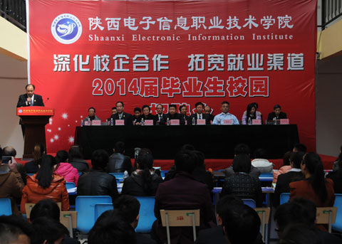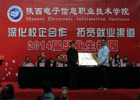 院理事会理事长穆耀辉致欢迎词。他向前来选拔我院2014届毕业生的用人单位表示衷心的感谢和热烈的欢迎,针对目前的就业形势,他希望2014届毕业生积极转变就业观念,确立合理的就业期望值,珍惜每一个就业机会,积极与参会单位、企业应聘签约;希望各用人单位选拔到合适的人才;同时也真诚希望在校学生提前进入角色,把校园招聘会作为锻炼和提高自身就业竞争力的平台,及早谋划个人就业计划,为今后实现顺利就业打下良好的基础。开幕式上,院党委书记史军胜代表学院与巨腾国际控股有限公司进行了学生实习实训基地和人才培养基地相互授牌。并为寒假参加社会实践获得优秀员工的学生颁发了荣誉证书和奖金,毕业生代表王翔在大会上发言。