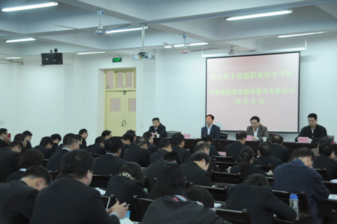 会上,院党委副书记穆耀辉宣读了陕西电子信息职业技术学院党的群众路线教育实践活动领导小组成员名单。院党委书记史军胜作动员报告,传达学习了省委高教工委关于党的群众路线教育实践活动工作会议精神,并对我院开展党的群众路线教育实践活动进行了全面动员和部署。他指出开展好党的群众路线教育实践活动:一要深刻认识活动的重大意义,将思想和行动统一到党中央、省委的决策部署上来;二要准确把握群众路线教育实践活动的指导思想、目标要求和方法步骤;三要加强领导,精心组织,确保党的群众路线教育实践活动取得实效。他强调党的群众路线教育实践活动意义重大,任务艰巨,全体党员、干部要提高认识,积极参与,以主人翁的姿态和对学院高度负责的精神,为学院的科学发展建言献策,为把学院做大做强做优而共同奋斗。