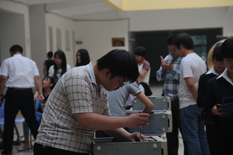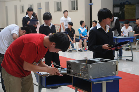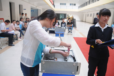 比赛分为笔试和组装两个阶段,经过激烈角逐,信息工程系1308班谢瑶瑶获得一等奖;机电工程系1301班夏鹏、信息工程系1308班张艳妮获得二等奖;经济管理系1304班张炎奇、信息工程系1308班鲍桂芬、李泽野获得三等奖;机电工程系1301班史征、经济管理系1305班贾媛媛、信息工程系1308班魏阳、1309班曾倩倩、1310班时同获得优秀奖。