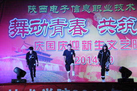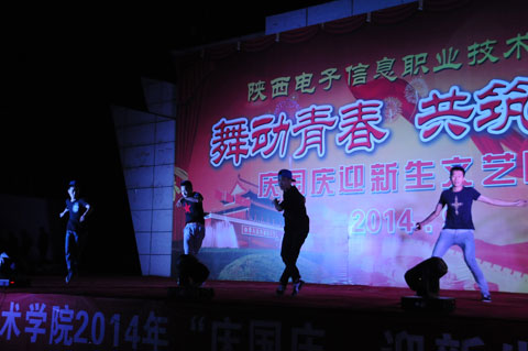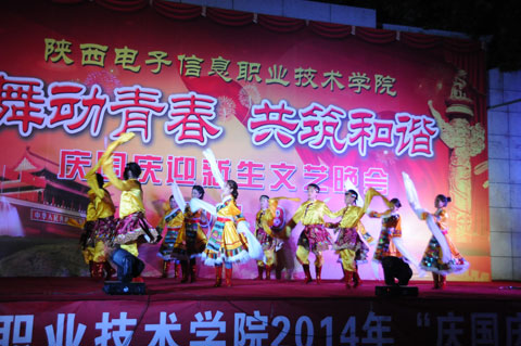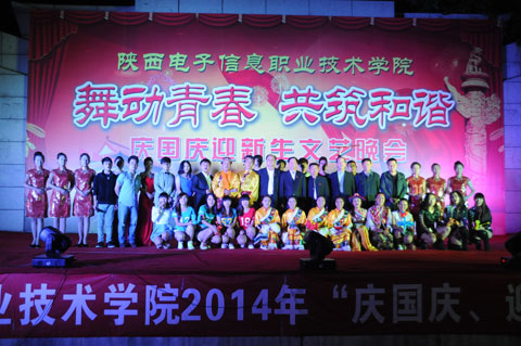 2014年9月29日晚19时,我院2014年庆国庆迎新生文艺晚会在一号楼广场举行。晚会以“舞动青春  共筑和谐”为主题。院党委书记史军胜,院理事会理事长兼常务院长、院党委副书记穆耀辉,副院长夏绘秦,院工会主席杨瑞卿以及各系部处室的领导老师和全院学生共同观看了晚会。